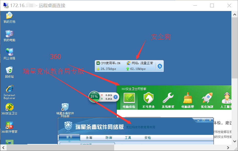 上传社团专用 JSP 大马(下载地址:https://www.klmyssn.club/dama/ssn-jsp.zip),服务器虽安装 360 主动防御、安全狗、瑞星杀毒(教育局专版),但未对大马上传与执行造成拦截。