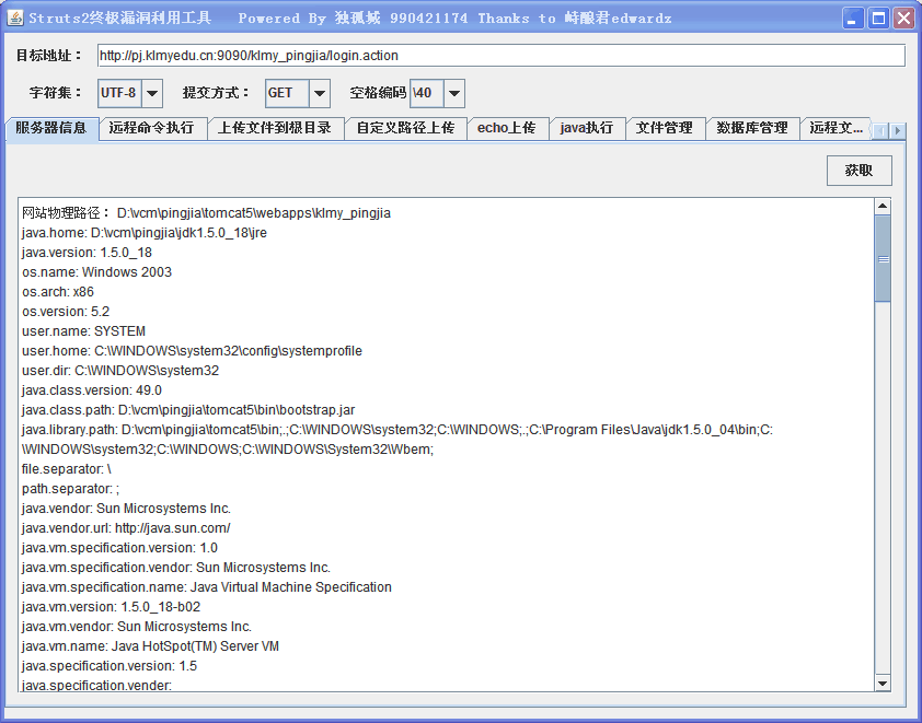 漏洞利用:使用 ST2 漏洞利用工具(社团工具地址:),获取服务器敏感信息: