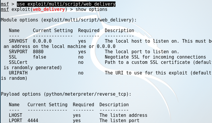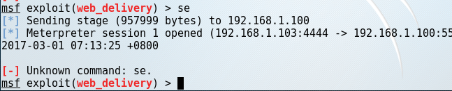 使用 Metasploit 中的 web_delivery 模块生成一个 Powershell 脚本