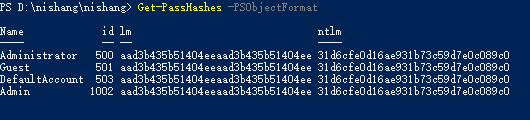 Get-PassHashes:这个脚本在 Administrator 的权限下,可以读出密码哈希值