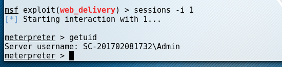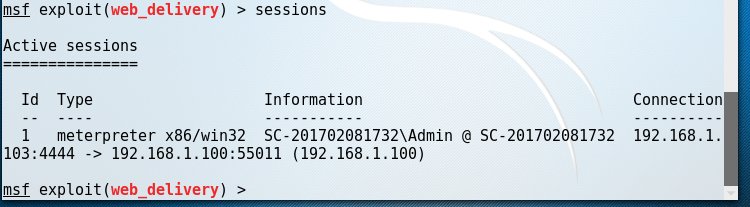 然后我在物理机上执行下 Metasploit 给我的 Powershell 执行代码