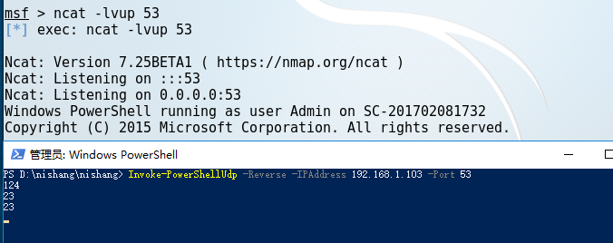 Invoke-PowerShellUdp:互交式 Powershell 反向 udp 连接