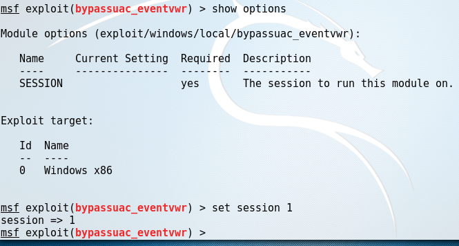 设置 session:set session(设置你刚刚获得的 meterpreter 会话)