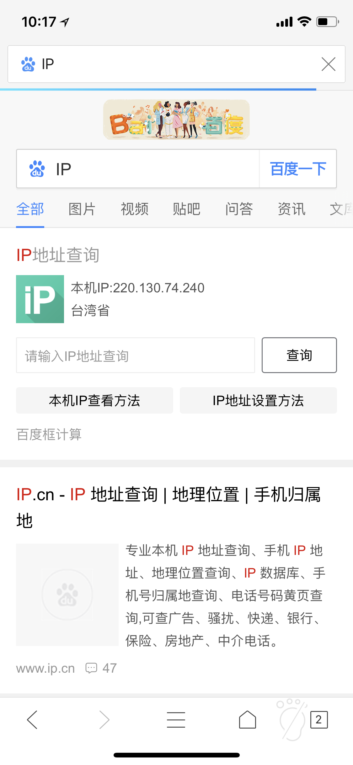 连接 VPN 后,通过浏览器查看 IP,确认已切换至非新疆地区(示例:台湾 IP):