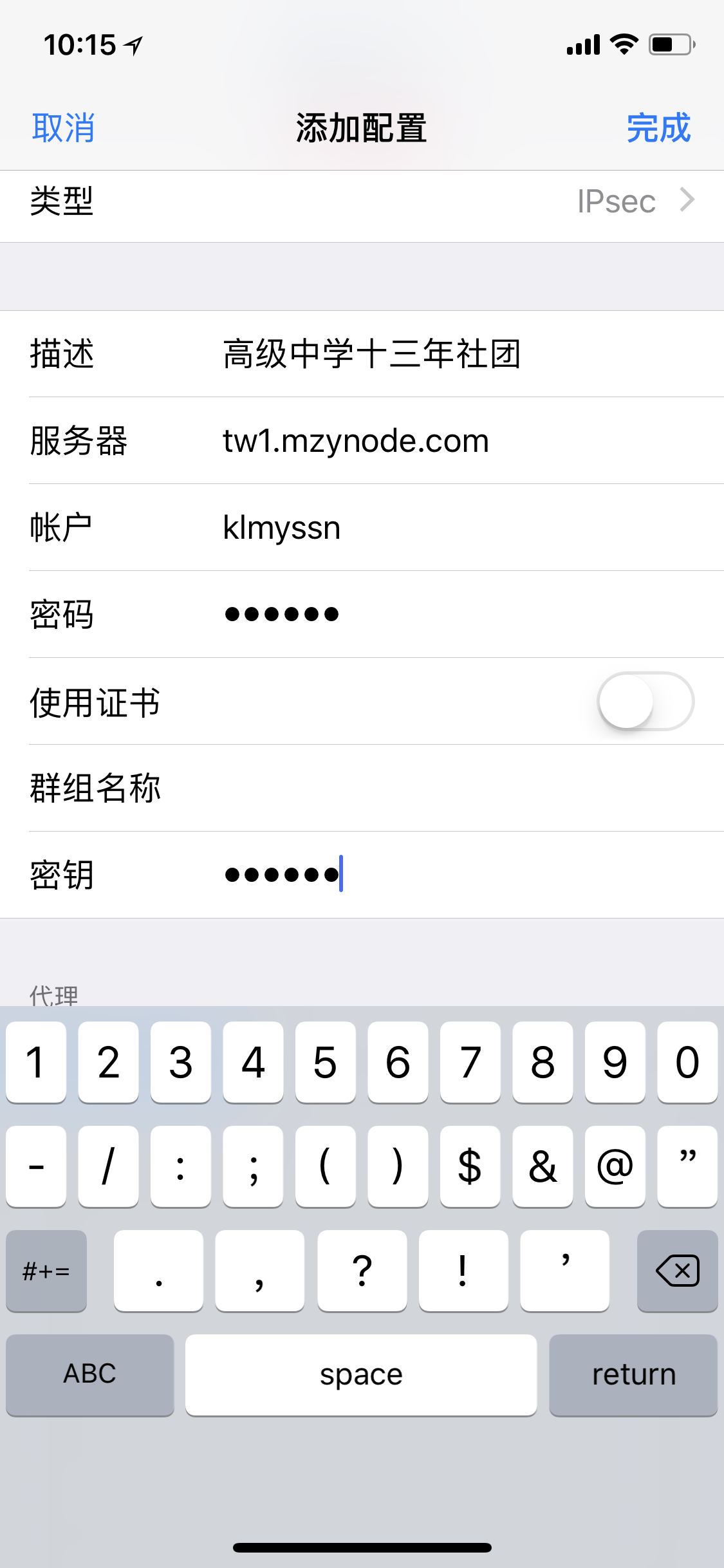 服务器填写:VPN 配置中的 “服务器” 需填写非新疆地区的有效服务器(新疆 IP 已被限制,无法使用)。
