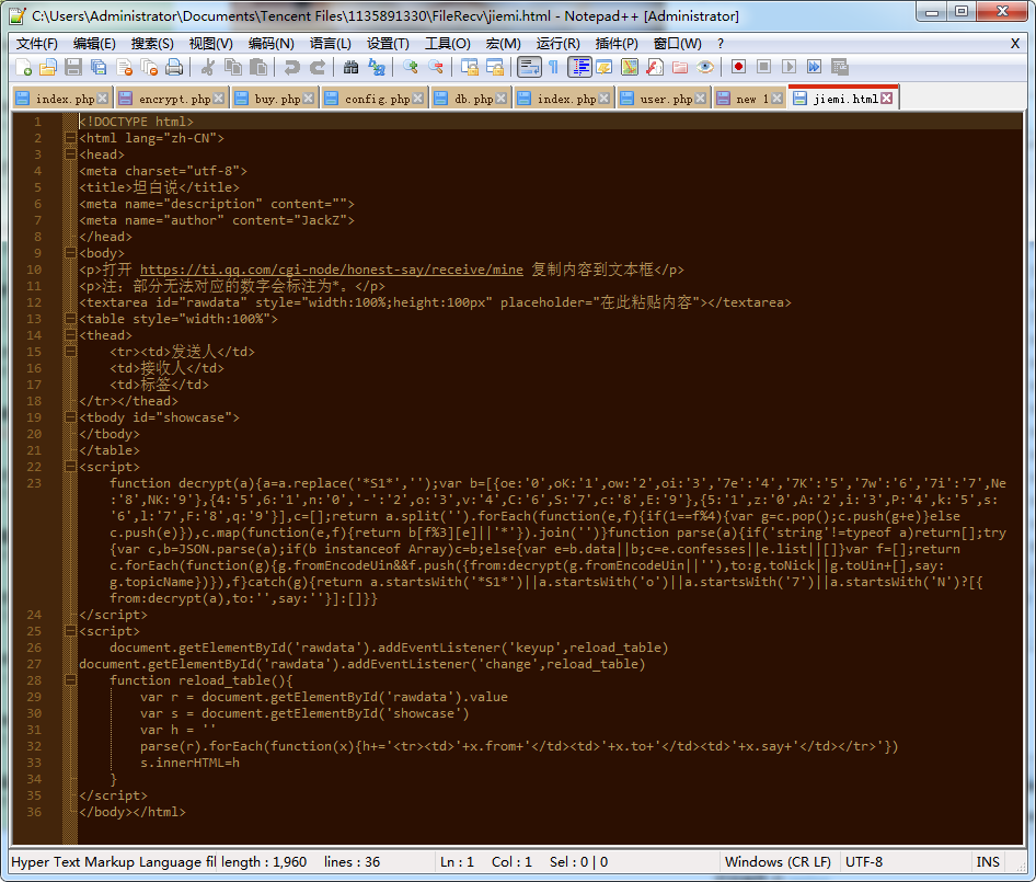 效果如图,为了方便一些,直接把这个 HTML 传到社团网站了,大家可以直接访问此链接解密。
