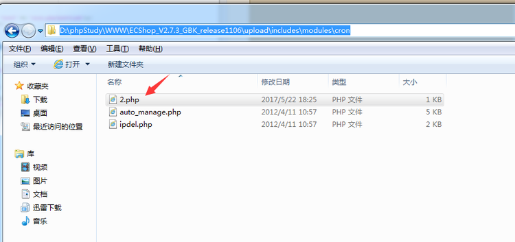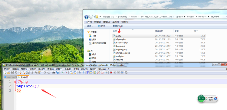 进入includes/modules/payment目录,新建2.php(含phpinfo());