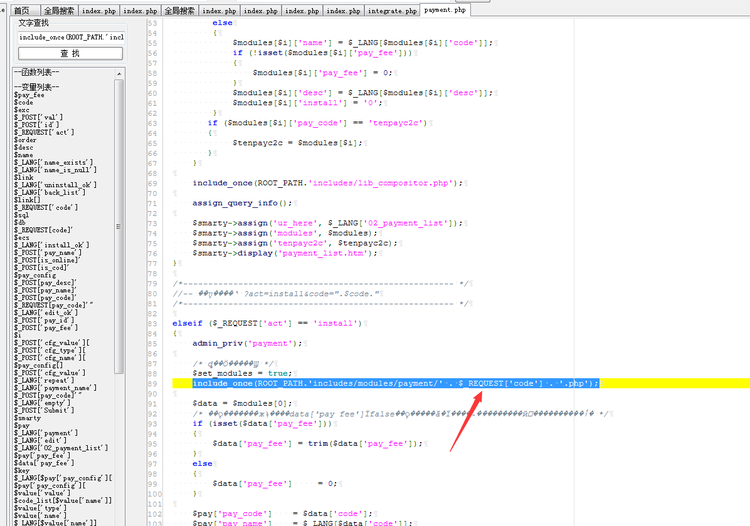 发现类似案例二的代码逻辑,变量$payment可疑: