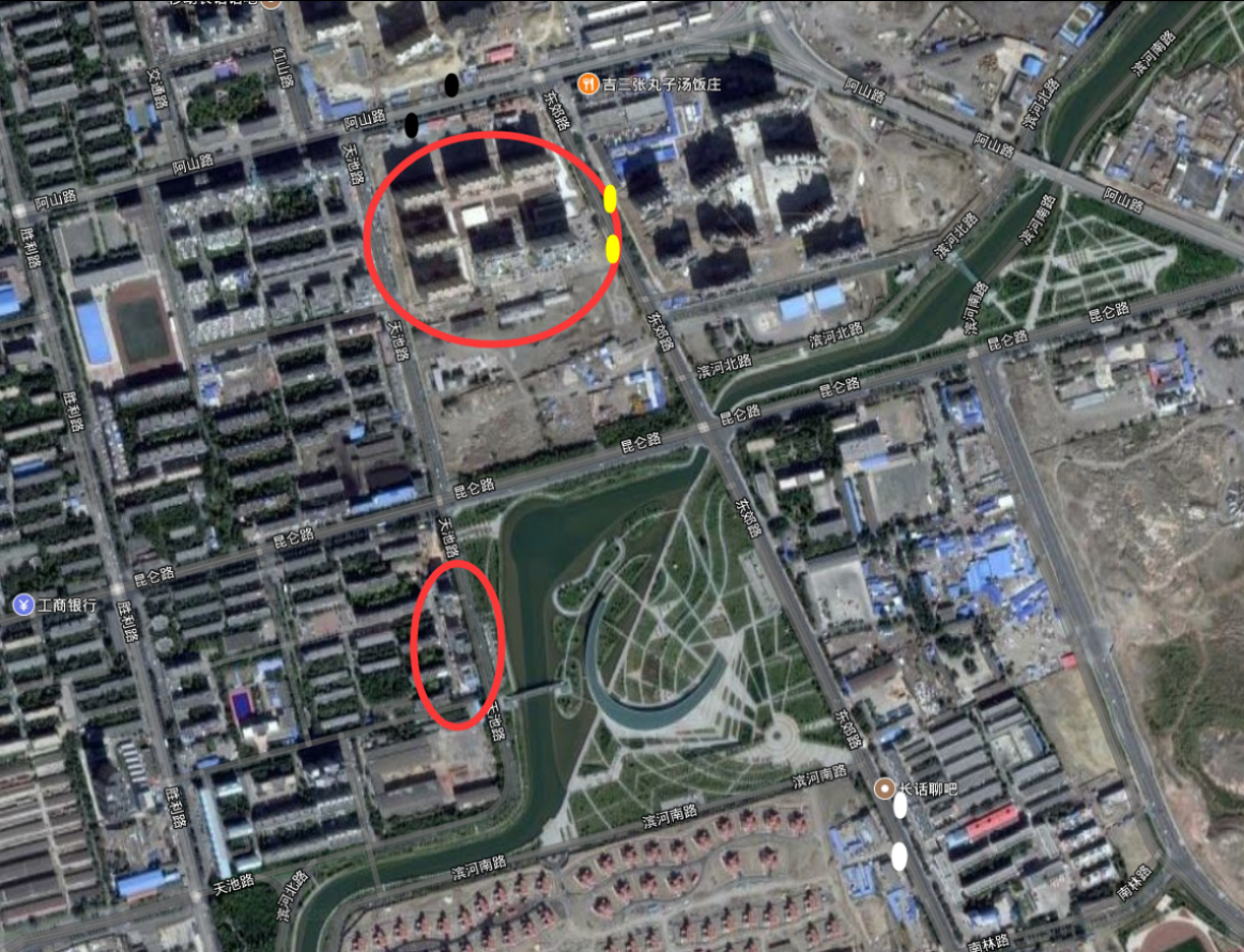 据此排除无高层的小区,最终仅剩 2 个小区。通过分析两个小区的地理位置及与公交站台的距离: