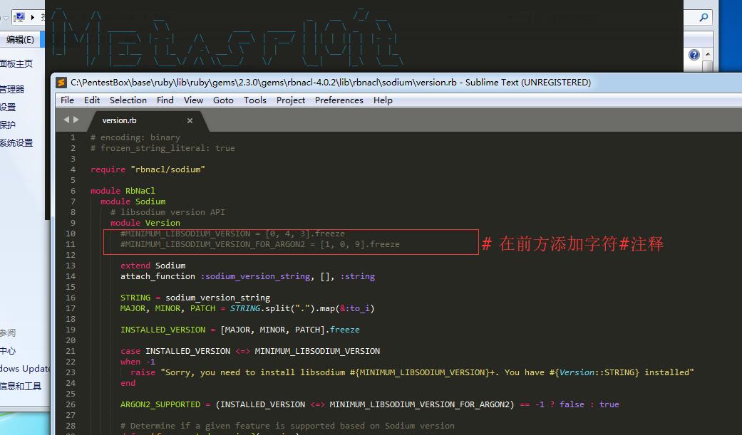 ruby_devkit 路径:%Pentestbox%\base\ruby_devkit