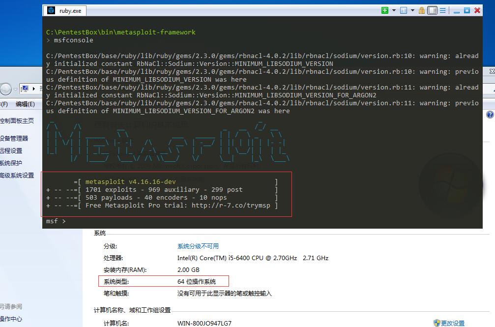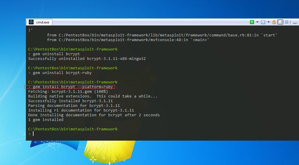 更新完成后,PentestBox 可正常运行 MSF 等工具,效果如下: