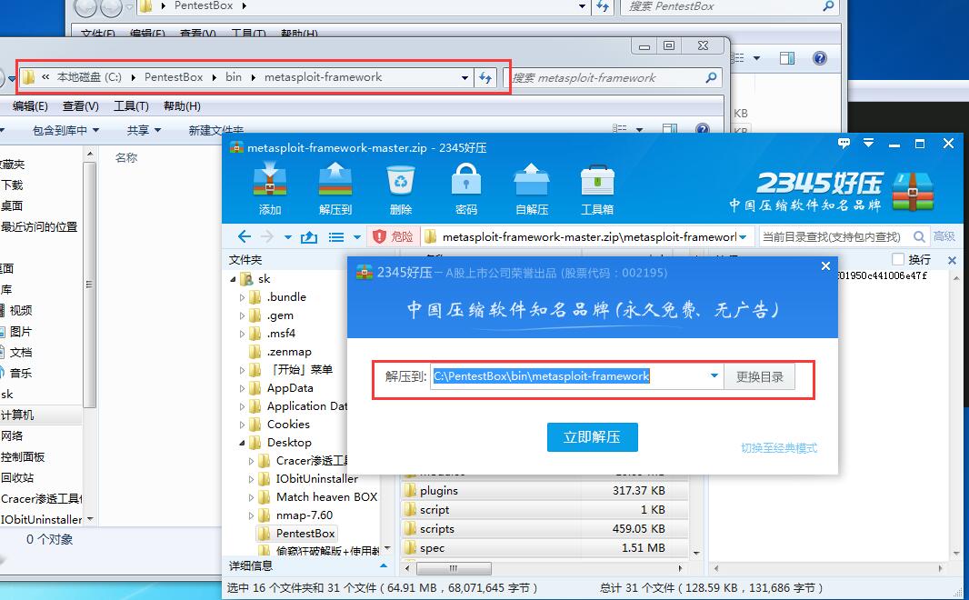 删除原 MSF 目录:打开C:\PentestBox\bin\metasploit-framework,删除所有原有文件;