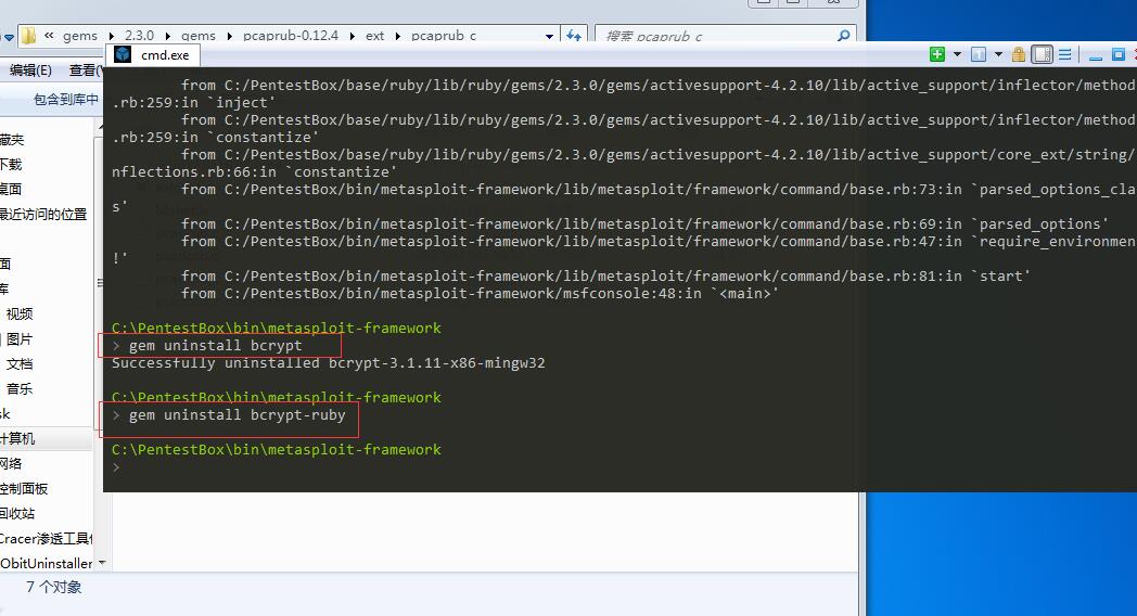 删除原 DevKit 目录:打开C:\PentestBox\base\ruby_devkit,删除所有原有文件;