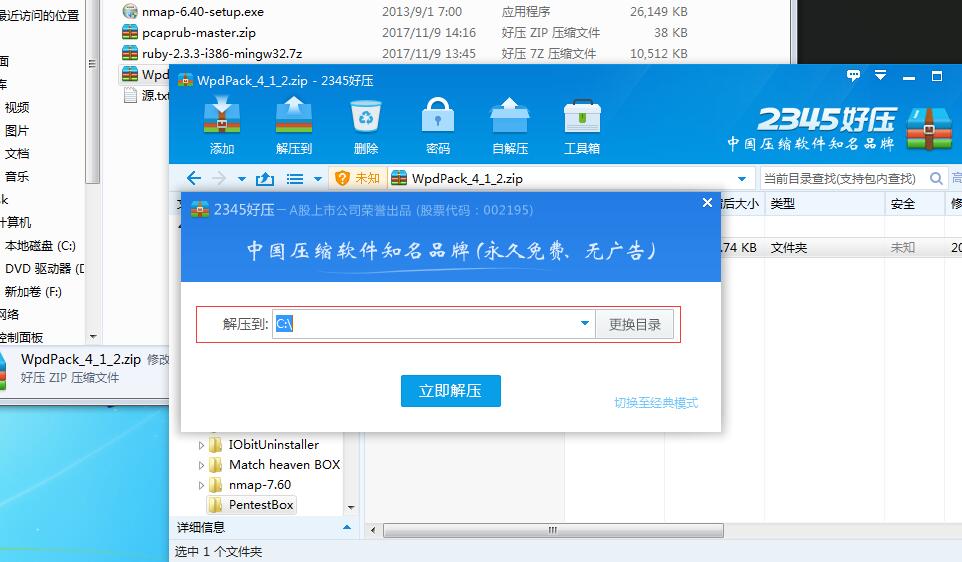 解压 WpdPack:将WpdPack_4_1_2.zip解压到C:\WpdPack(默认路径,避免修改);