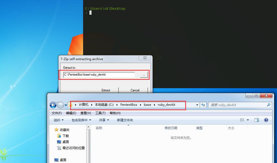 删除原 Ruby 目录文件:打开C:\PentestBox\base\ruby,删除所有原有文件;