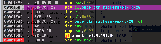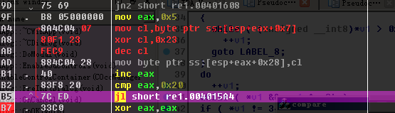 核心逻辑为 “前 6 位格式校验 + 后 27 位循环异或”,由于异或运算可逆,直接修改汇编指令跳过异或验证。