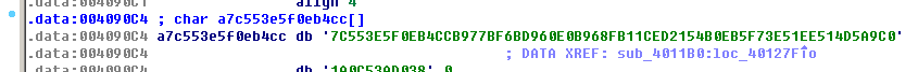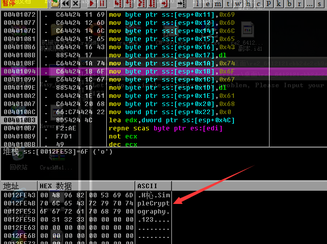 用动态调试工具(如 x64dbg)跟踪程序,在内存中找到 RC4 加密的密钥(程序加载密钥时的内存地址)。