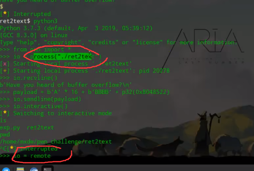 使用pwntools库编写攻击脚本,首先导入模块并建立与目标程序的连接(本地调试时用process,远程攻击时用remote):