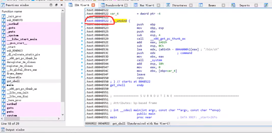 getshell()函数地址截图(IDA 中查看):