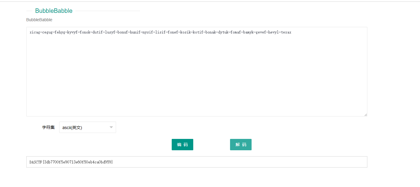 使用在线 BubbleBabble 解码工具(如https://www.dcode.fr/bubblebabble-cipher)解码: