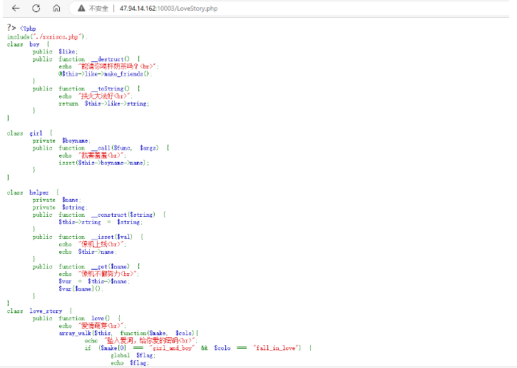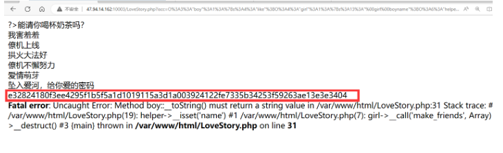 编写 Python 脚本循环发包,直到p1前 10 位与当前时间戳匹配,触发变量覆盖与反序列化,读取flag.php的 Base64 编码内容;