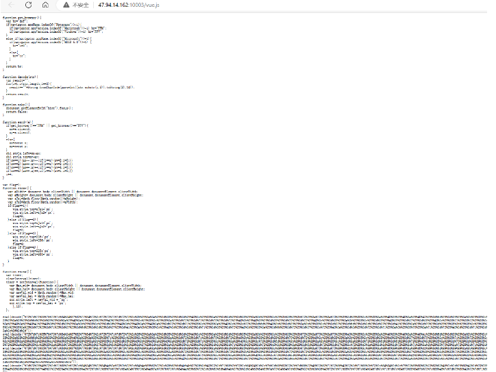 访问目标页面,通过view-source:http://47.94.14.162:10000/查看页面源码,发现引用了vue.global.js;