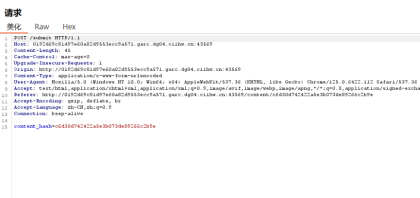 使用浏览器打开解题地址,页面有一个登录框。输入任何密码均可登录,但需记住页面中的content_hash值 —— 后续插入 JS 代码时会用到。